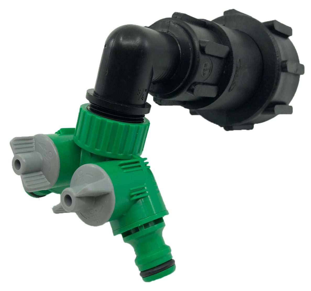 Praktisk kran till IBC-behållare med 2 st. individuellt avstängningsbara kranar med Gardena snabbkopplingar. Underlättar när man oberoende av varandra, vill fördela vatten från sin 1000-liters tank. I artikeln ingår:- 1 st. adapter 60x6 med 3/4" invändig, svivlande gänga