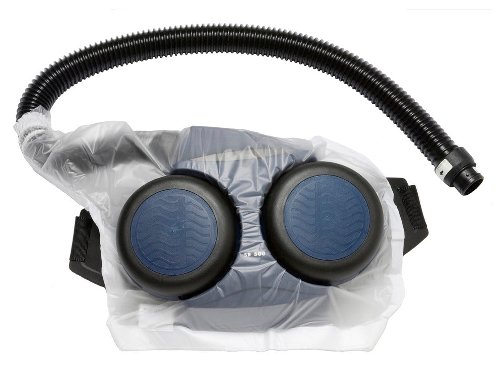 Plastöverdragen används för att skydda den luftrenande andningsapparaten SR 500 mot nedsmutsning, t.ex. vid sprutmålning.