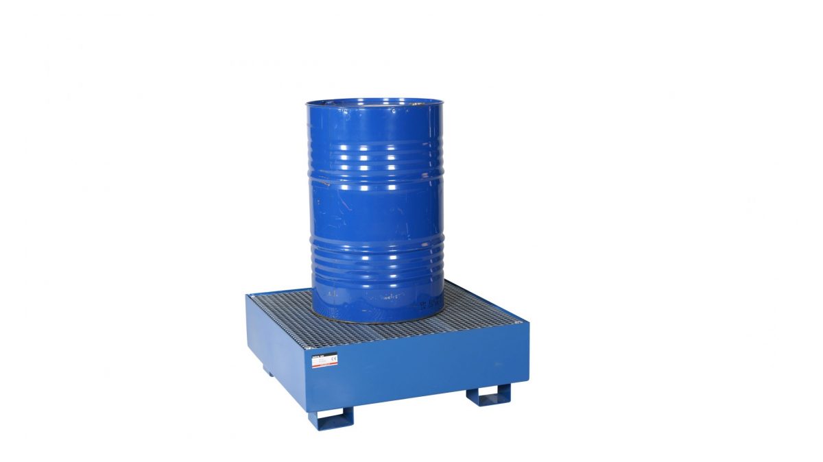 Kraftig helsvetsad miljöpall för 1 st 1/1-fat (200-220 liter). Galvaniserad gallerdurk. Spilltråget flyttas enkelt med gaffellyftvagn eller gaffeltruck. Rostskyddsbehandlad och pulverlackerad i blått. Spilltåget rymmer 210 liter Mått: 950x950x325 mm (LxBxH)Share