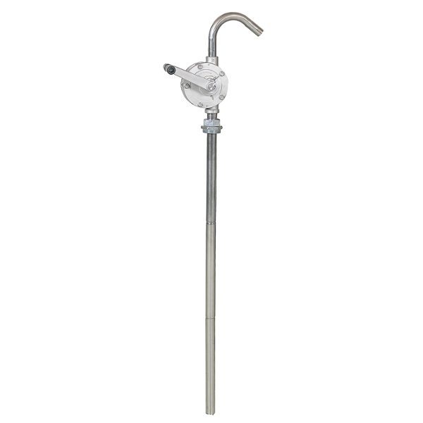 Vevpump i rostfritt stål av vingtyp. Pump för i första hand olika typer av kemikalier. Pumpröret levereras i delar och skruvas ihop efter behov. Klarar upp till 1/1-fat. Fatförskruvning ingår (2")- Kapacitet: 0,35 liter/ varv