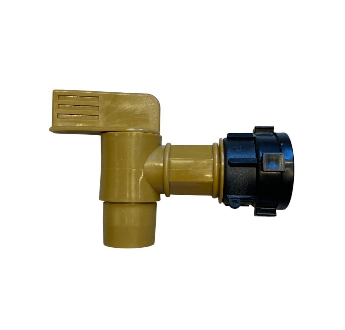 Avtappningskran till 1000-literstankar. Kranen har den allra vanligaste dimensionen på gängorna, 60x6. Vill du läsa mer om vilka olika gängtyper som finns på IBC, klicka här!- Gänga, 60x6.